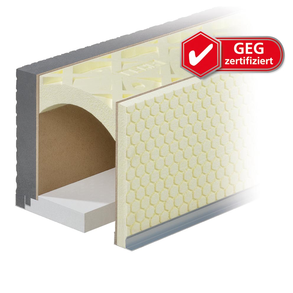 - Neopor® Dämmkeil mit exzellenter Wärmedämmung (bis Usb = 0,76 W/(m²K))