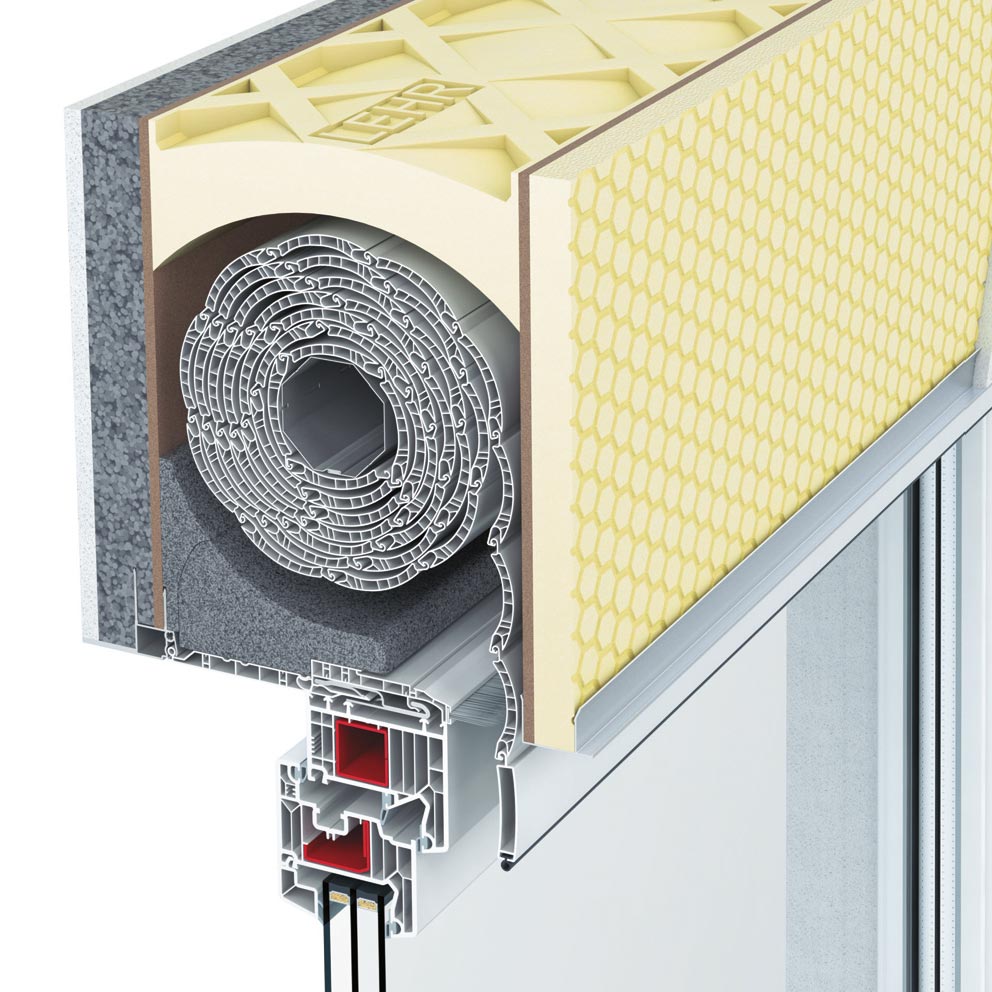 Unsere Vorbaukästen bieten nicht nur eine energieeffiziente Lösung, sondern auch hervorragenden Sicht- und Schallschutz. Sie sind besonders langlebig, wartungsarm und lassen sich perfekt in verschiedene Fassadenoptiken integrieren. Die Montage erfolgt direkt am Gebäude oder in der Laibung, wodurch keine Wärmebrücken entstehen und somit eine effektive Wärmedämmung gewährleistet wird.