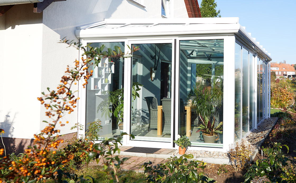 Durch hochwertige Wärmeschutzverglasung und isolierte Rahmenprofile bleibt Ihr Wintergarten auch bei kaltem Wetter angenehm temperiert. Die Sonnenstrahlen erwärmen den Raum und die gute Dämmung speichert die Wärme, sodass Sie auch in den Wintermonaten von einer natürlichen Energiequelle profitieren können. Das 3-fach-verglaste Wärmeschutzglas sorgt dafür, dass die Wärme im Wintergarten gehalten wird.